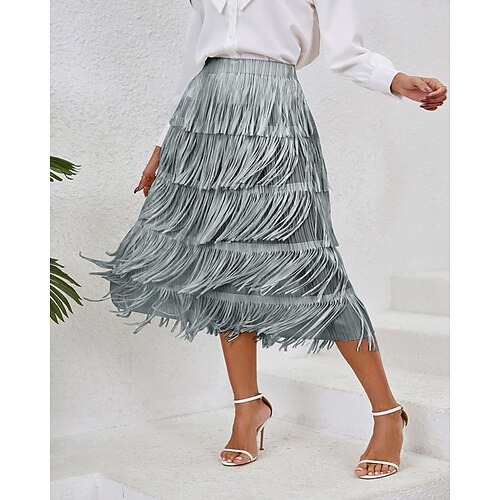 Per donna Gonna Elegante Vintage Moda Casual Midi Vita media Gonne Semplice Frangia con nappe Patchwork Micro-elastico Quotidiano Streetwear Verde mela Nero Bianco Verde chiaro Estate Poliestere