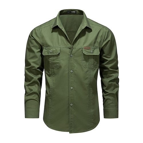 Per uomo camicia cargo Camicia da escursionismo Manica Lunga Collo ripiegato Top Esterno Traspirante Cotone Nero Verde militare Cachi Caccia Allenamento Viaggio