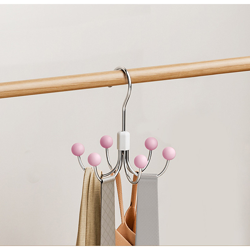 Six-Prong Hook, 360-Degree Rotating Wardrobe Bag Hanger, Multi-Functional Underwear Hanger, Coat and Hat Storage Hook
