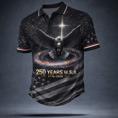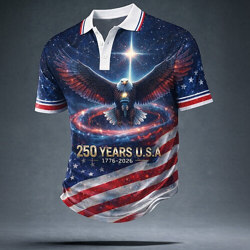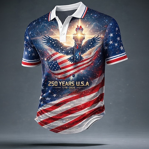 Herren Amerikanische US-Flagge Poloshirts Kurzarm Polo-Shirts Revers Lässig Athleisure Alltagskleidung Festival-Outfit 3D-Druck Knöpfe Frühling Sommer Blau Schwarz Rote