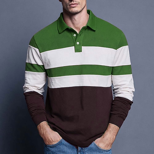 Herren Horizontale Streifen Rugby-Poloshirt Langarm Polo-Shirts Hemden mit Kragen Sportbekleidung Lässig Outdoor Schule Athleisure 3D-Druck Frühling Herbst Blau Rote Braun
