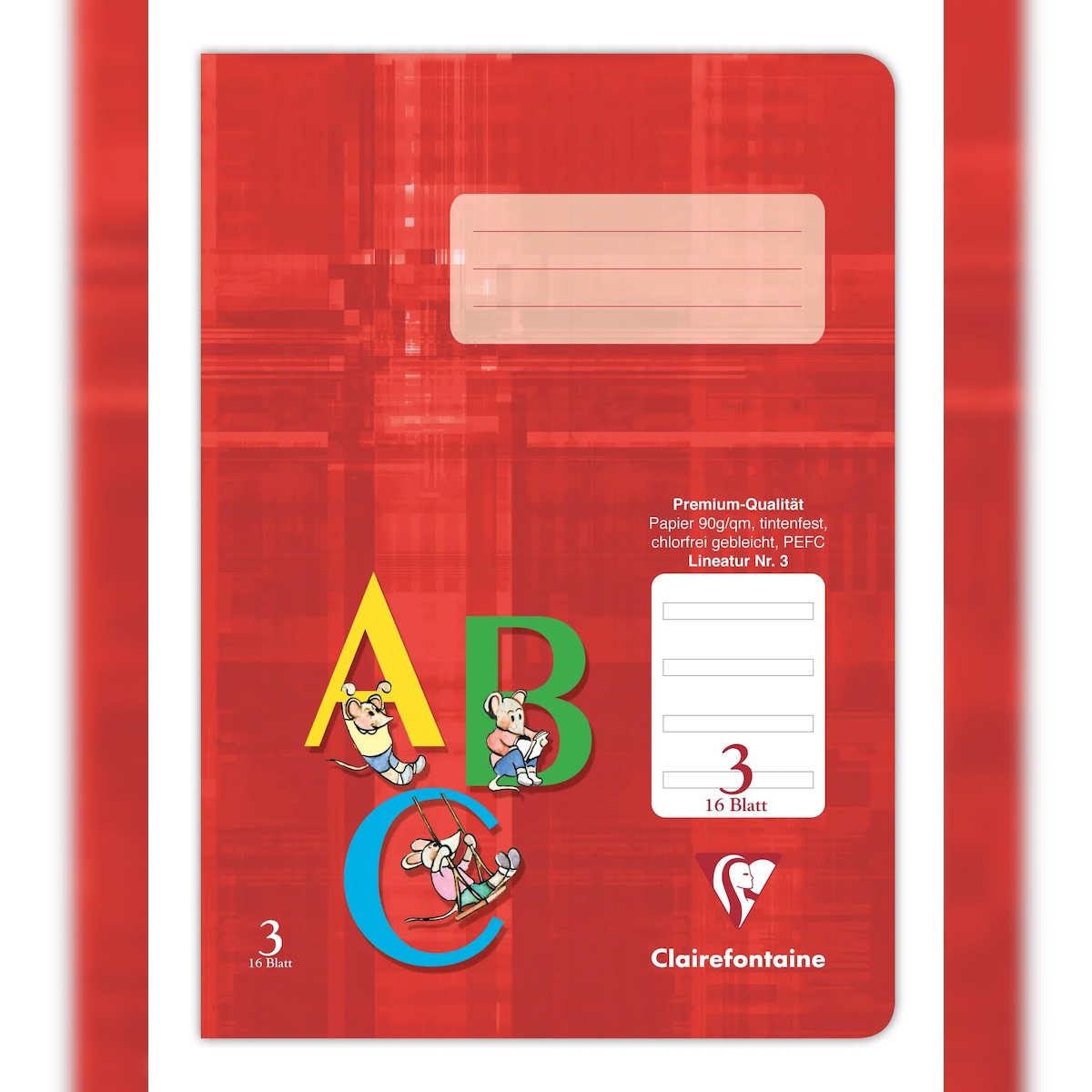Clairefontaine 25x Schulheft Clairefontaine, DIN A5, 16 Blatt, 90g, Lineatur 3 liniert für 3. Schuljahr - Rot 331503C