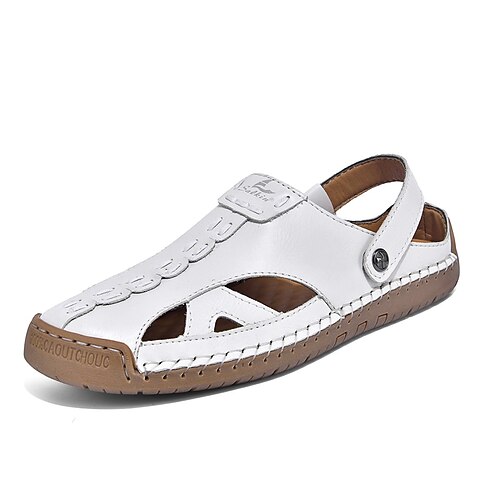 Sandali da uomo bianchi in similpelle – calzature estive casual, cinturino regolabile, scarpe da esterno per resort e vacanze