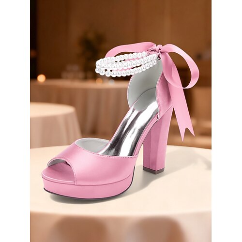 sandali da donna con tacco alto, plateau e cinturino alla caviglia con perle, in raso viola - scarpe da festa glamour con punta aperta, per serate, matrimoni e cocktail