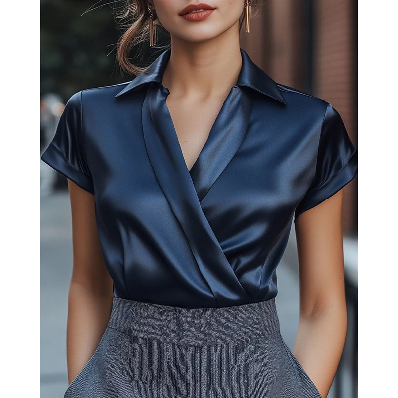 Women's Shirt Elegant Satin Summer Tops Plain Elegant Vintage Ladies Sleeveless Shirt Collar Regular Tops Daily Work Holiday Ruched Patchwork Draped Royal Blue Summer Spring
