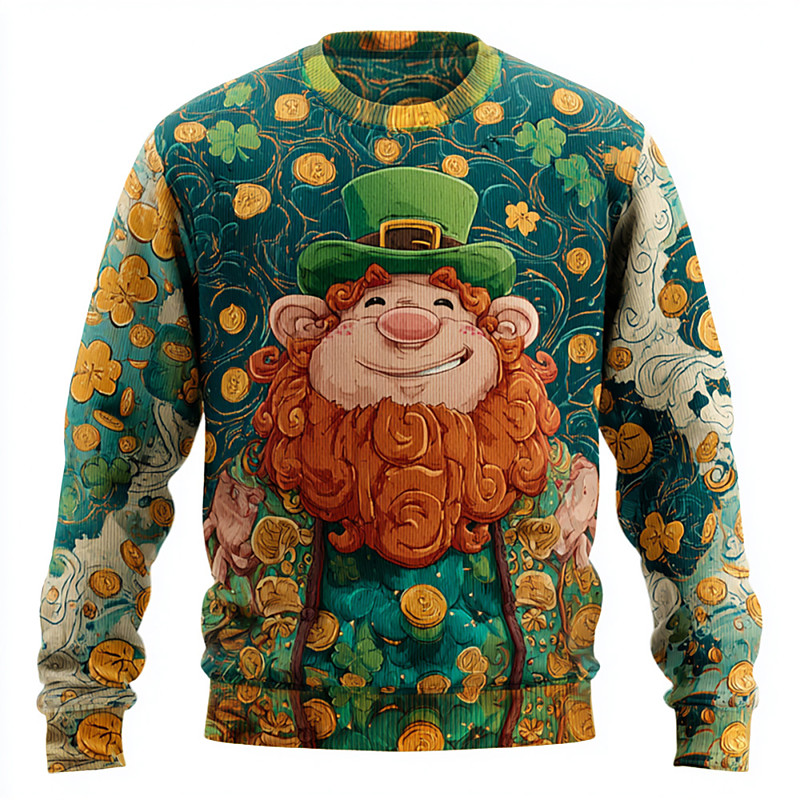 St. Patrick Men's Gnome Pullover Sweater Jumper Knitwear Crewneck Casual Daily Vacation Festival 3D Print Keep Warm Long Sleeve Spring Fall Winter Green 1# Green 2# Green 3#