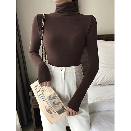 Per donna Blusa Tinta unica Elegante Casual Manica Lunga Dolcevita Top Regolari Quotidiano Arricciato Nero Bianco Rosa Vino Blu Estate Primavera Autunno