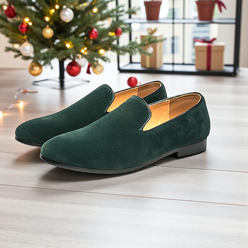 Men's Green Suede Slip-On Shoes - Elegant Christmas Style, Perfect for Holiday Parties and Festive Occasions