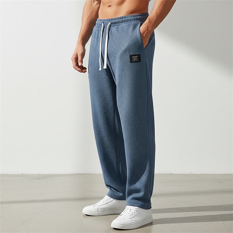 Men's Waffle Sweatpants Trousers Baggy Pants Straight Leg Sweatpants Drawstring Elastic Waist Solid Color Comfort Full Length Daily Outdoor Streetwear Vacation Fashion Blue Black Micro-elastic