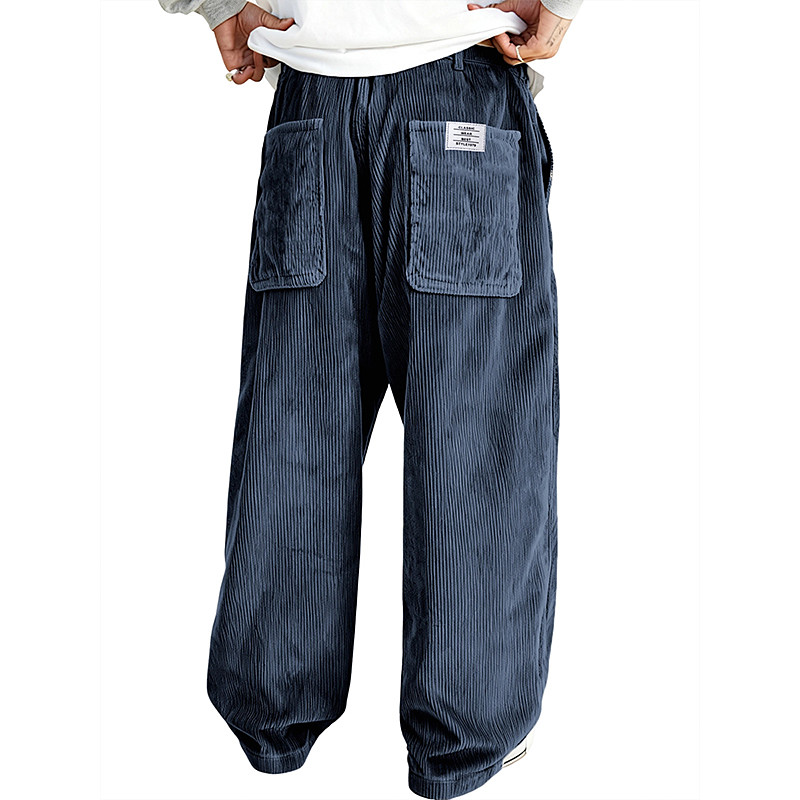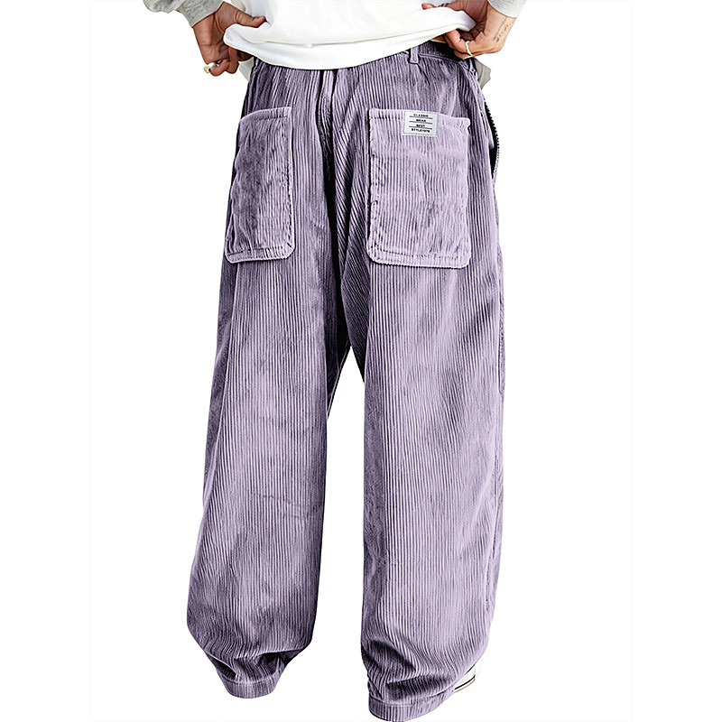 Men's Trousers Corduroy Pants Baggy Pants Casual Pants Pocket Elastic Waist Straight Leg Solid Color Comfort Full Length Daily Outdoor Streetwear Vacation Fashion Black White Micro-elastic