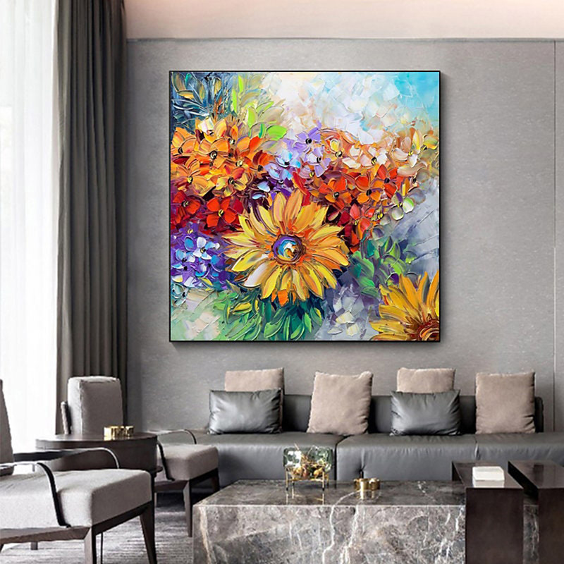 Floral Oil Painting Canvas Wall Art Decoration Colorful Flower Still Life for Home Decor Rolled Frameless Unstretched Painting