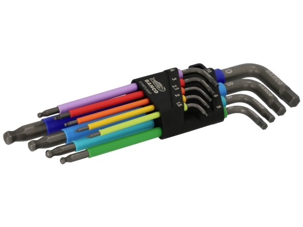 Bahco Unbrako® Schlüsselsatz mit farbigen Schlüsseln, metrisch, mit Kugel, lange Ausführung, 9-teilig