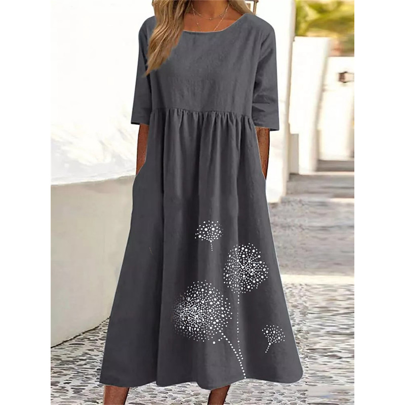 Women's Blue ArmyGreen Black Summer Spring Fall Maxi Dress Cotton Blend Casual Dress Tunic Dress Basic Casual Mature Daily Outdoor Vacation Loose Fit Dandelion Crew Neck
