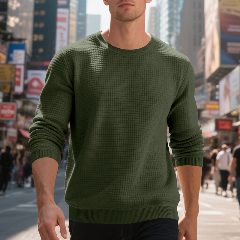 Men's Sweatshirt Black White Army Green Khaki Dark Gray Crew Neck Plain Jacquard Ribbed Textured Knit-texture Sports Outdoor Daily Holiday Polyester Streetwear Basic Casual Spring Fall Clothing