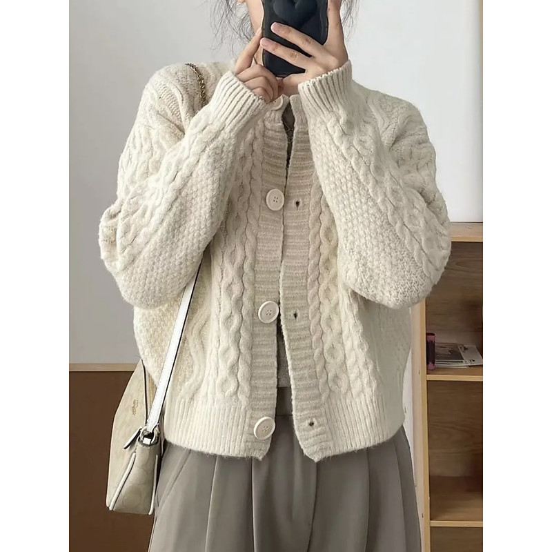 Women's Sweater Cardigan Elegant Fashion Streetwear Pure Color Crew Neck Buttons Knitted Long Sleeve Regular Tops Knit Outdoor Daily Weekend Pink Green Fall Winter