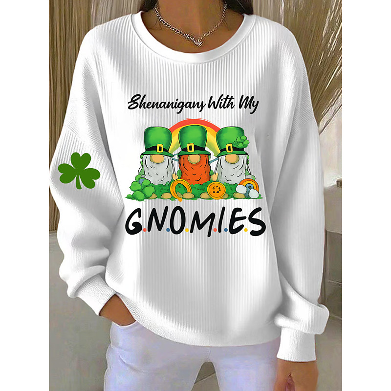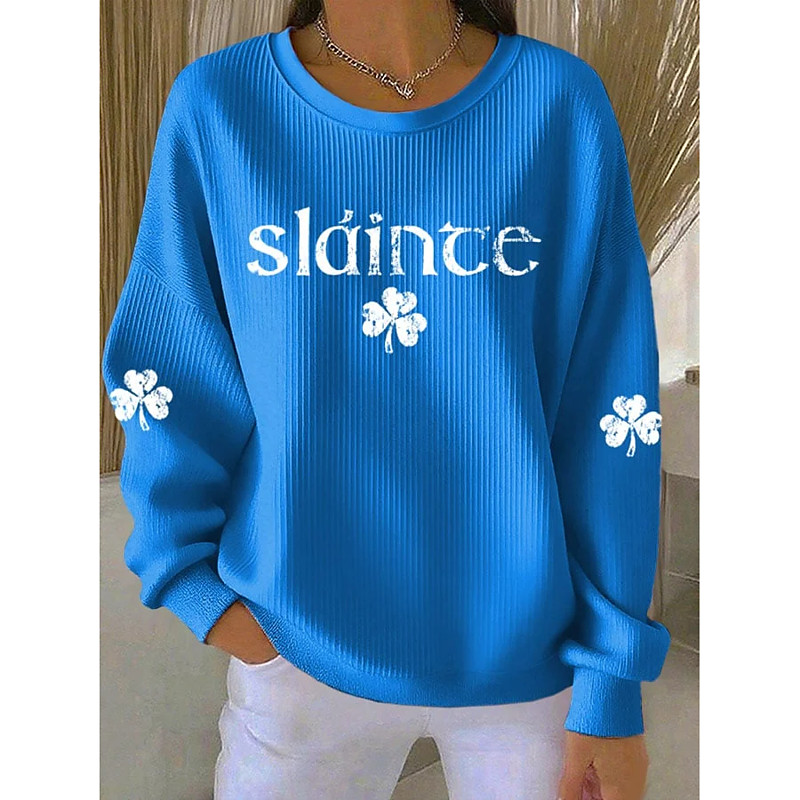 St. Patrick Women's Pullover Graphic Letter Warm Classic Casual Long Sleeve Crew Neck Round Neck Regular Tops Casual Home Street Print Blue Black White Spring Fall Winter