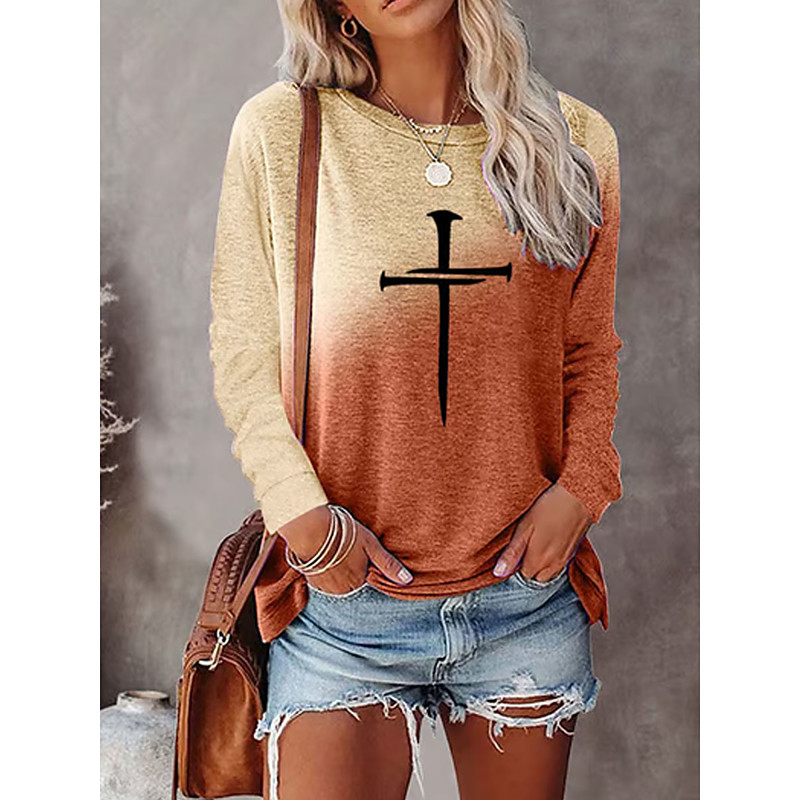 Women's T Shirt Ombre Graphic Vintage Stylish Classic Long Sleeve Crew Neck Regular Tops Daily Weekend Print Purple Orange Gray Fall Winter