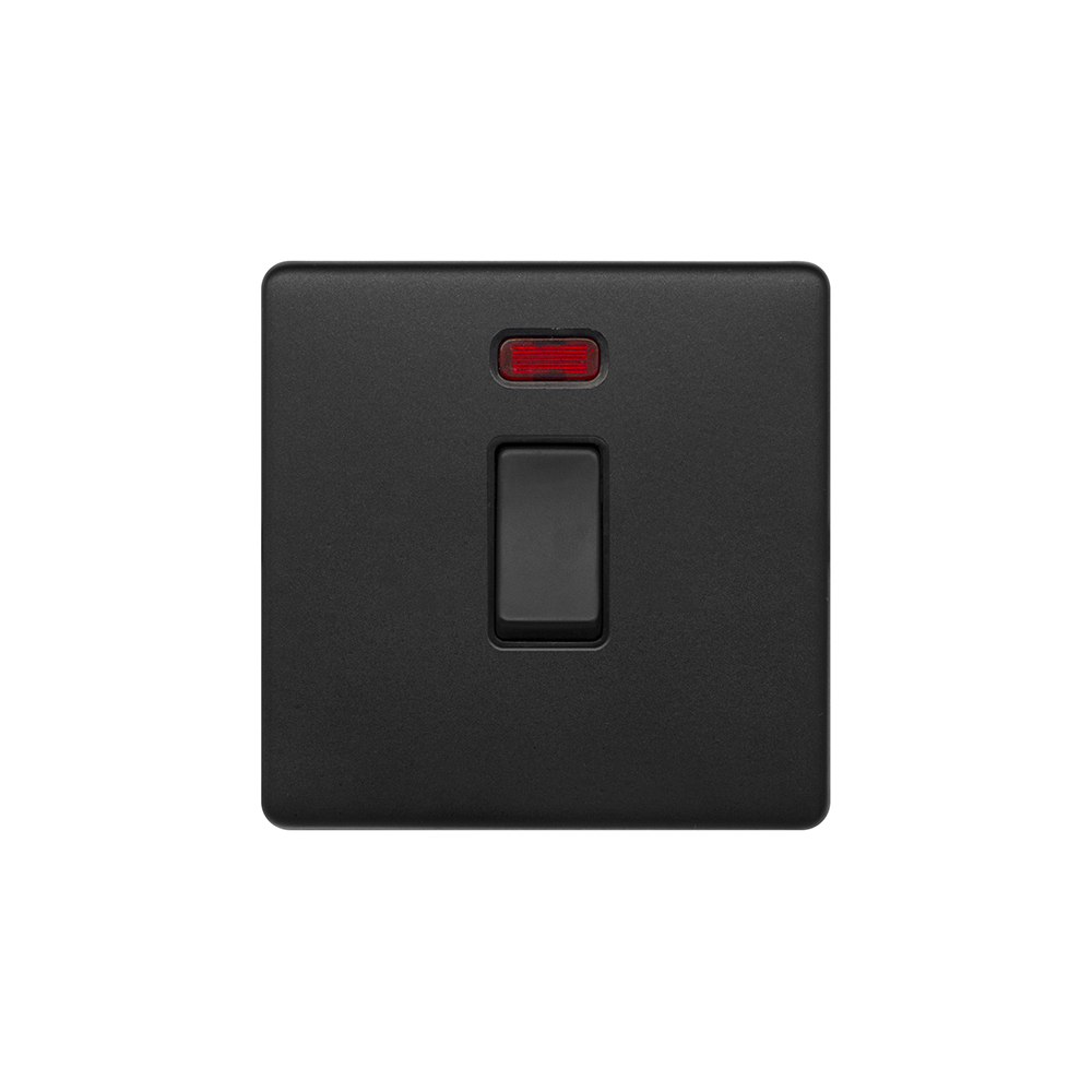 Soho Lighting Matt Black 20A 1 Gang Double Pole Switch With Neon Blk Ins Screwless