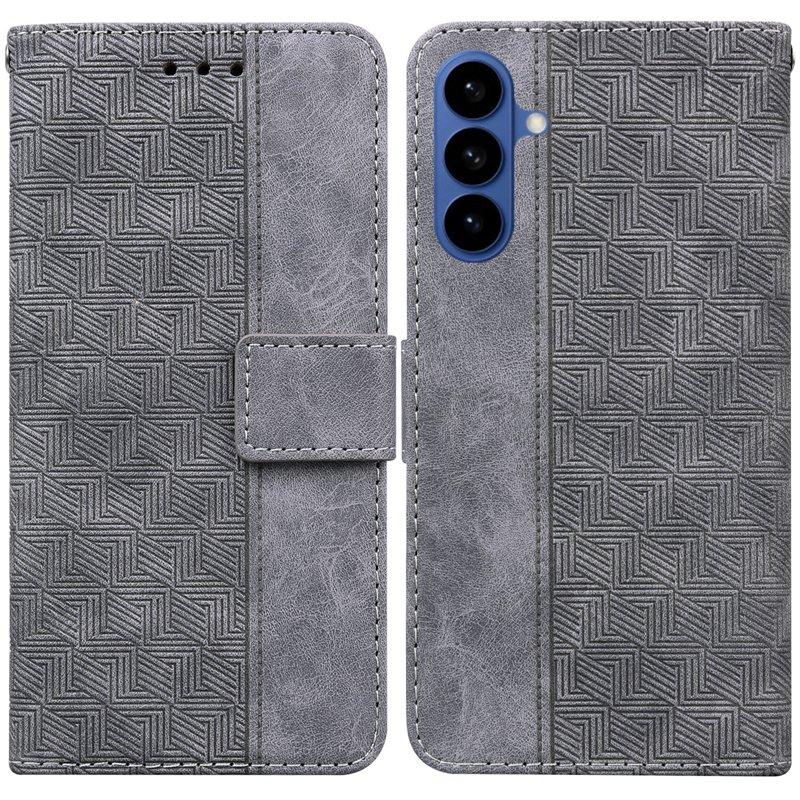 Samsung Galaxy S26 / S26 Pro Fodral Geometriskt Mönster Äkta Läder - Grå