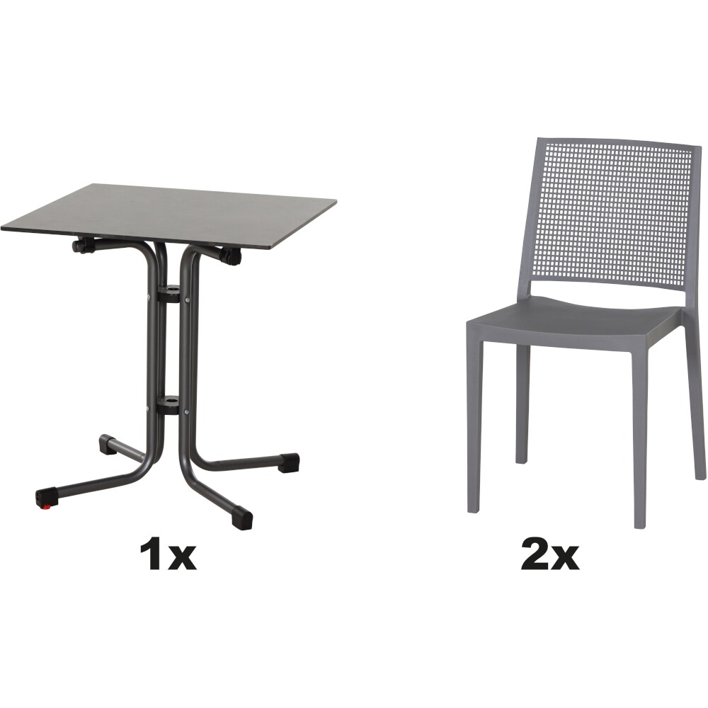 SIENA GARDEN Urban Lights Set 3teilig Square Stuhl gastrotauglich grau mit Tisch Sola 65x65