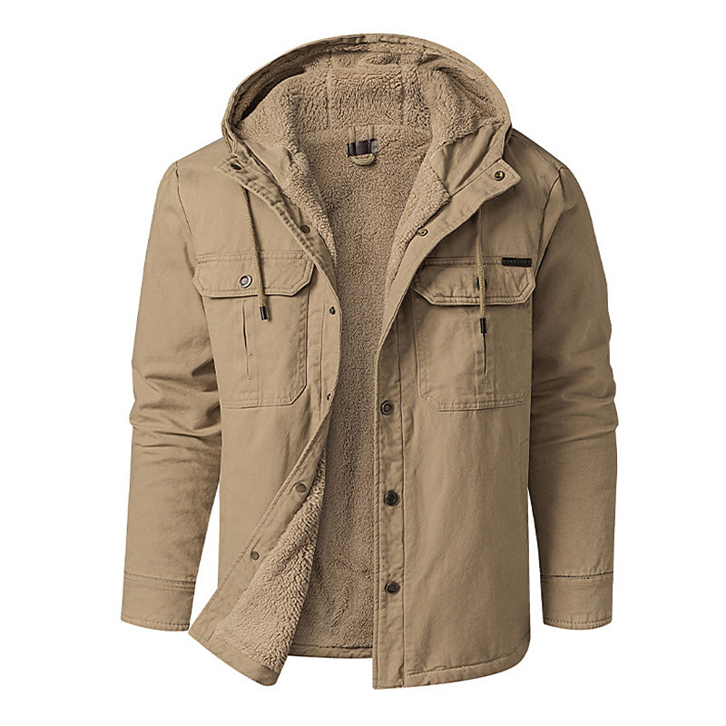 Men's Winter Coat Fleece Jacket Casual Jacket Work Jacket Casual Daily Thermal Warm Pocket Full Zip Fall Winter Solid Color Streetwear Daily Hooded Regular Blue Black Brown Green Khaki Jacket