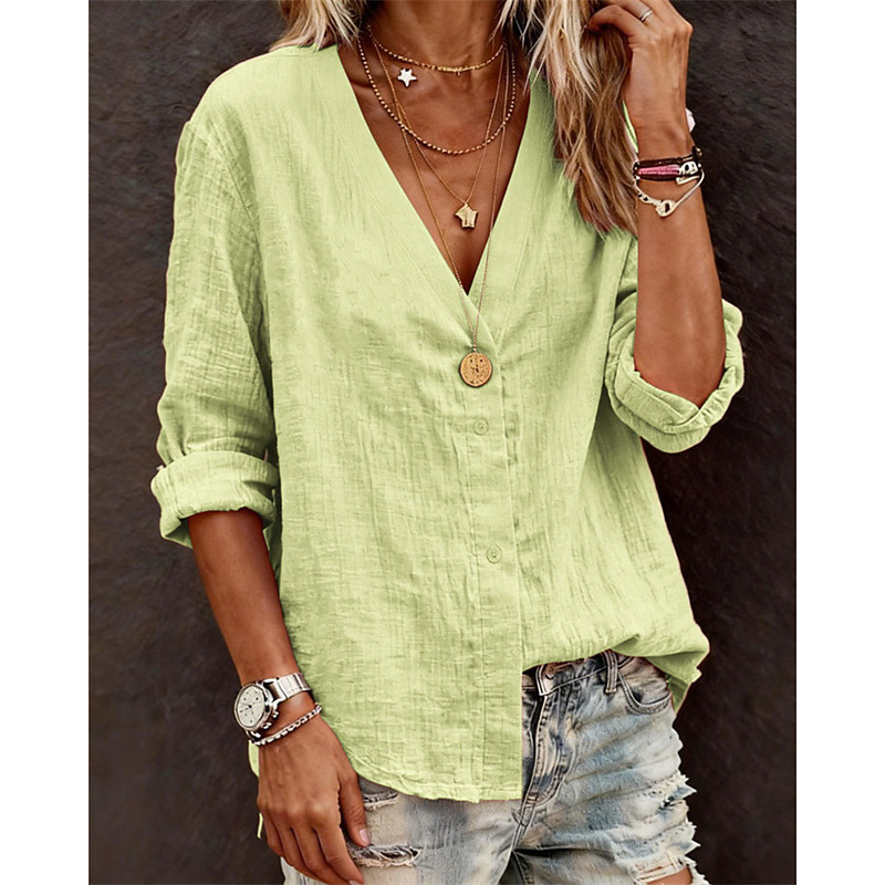 Women's Shirt Plain Ladies Long Sleeve Lantern Sleeve Shirt Collar Regular Tops Work Daily Ruffle Buttons Grass Green Green Beige Rose Pink Summer Spring
