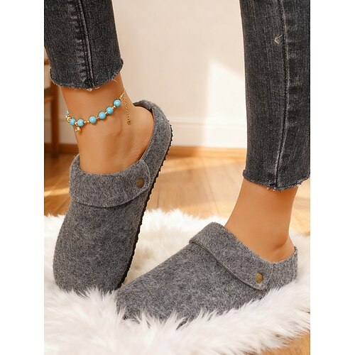 zoccoli da donna in feltro di lana sintetica color caffè con bottoni – comode e calde pantofole da interno ed esterno per passeggiate informali e abbigliamento da casa