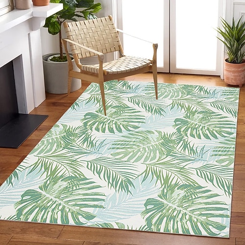 Tappeto con foglie tropicali, effetto cashmere, morbido, a pelo corto, lavabile, antiscivolo, verde botanico, per interni ed esterni, ideale per soggiorno, camera da letto e sala da pranzo.