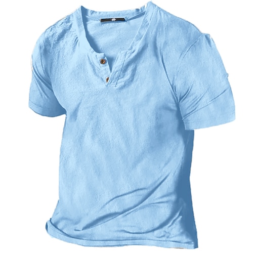 Herren leinenhemd Hemd mit Stehkragen Sommerhemd Strandbekleidung Lässiges Hemd Feste Farbe Outdoor Strasse Schwarz Weiß Hellgrün Blau Kurzarm Henley Sommer Frühling Bekleidung Button-Down