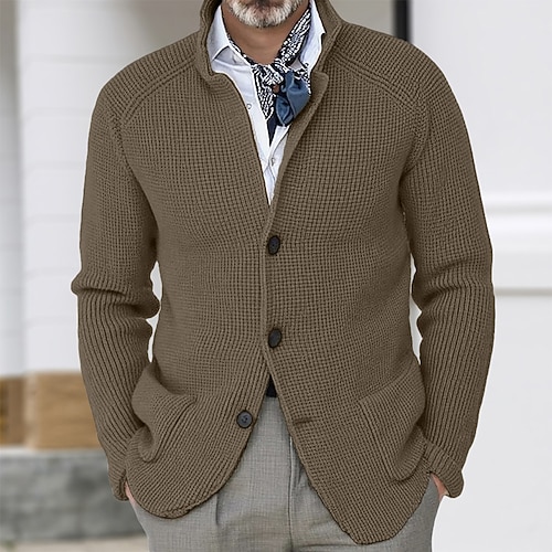 Herren Pullover Strickjacke Gerippt Stricken Normale Oberteile Gestrickt Button-Down Einfach Stehkragen Urlaub Mode Lässig Alltagskleidung Bekleidung Frühling Herbst Blau Schwarz S M L