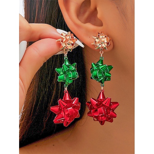 orecchini da donna con fiocco natalizio, design festoso rosso e verde con materiale in lega, perfetti per feste e regali