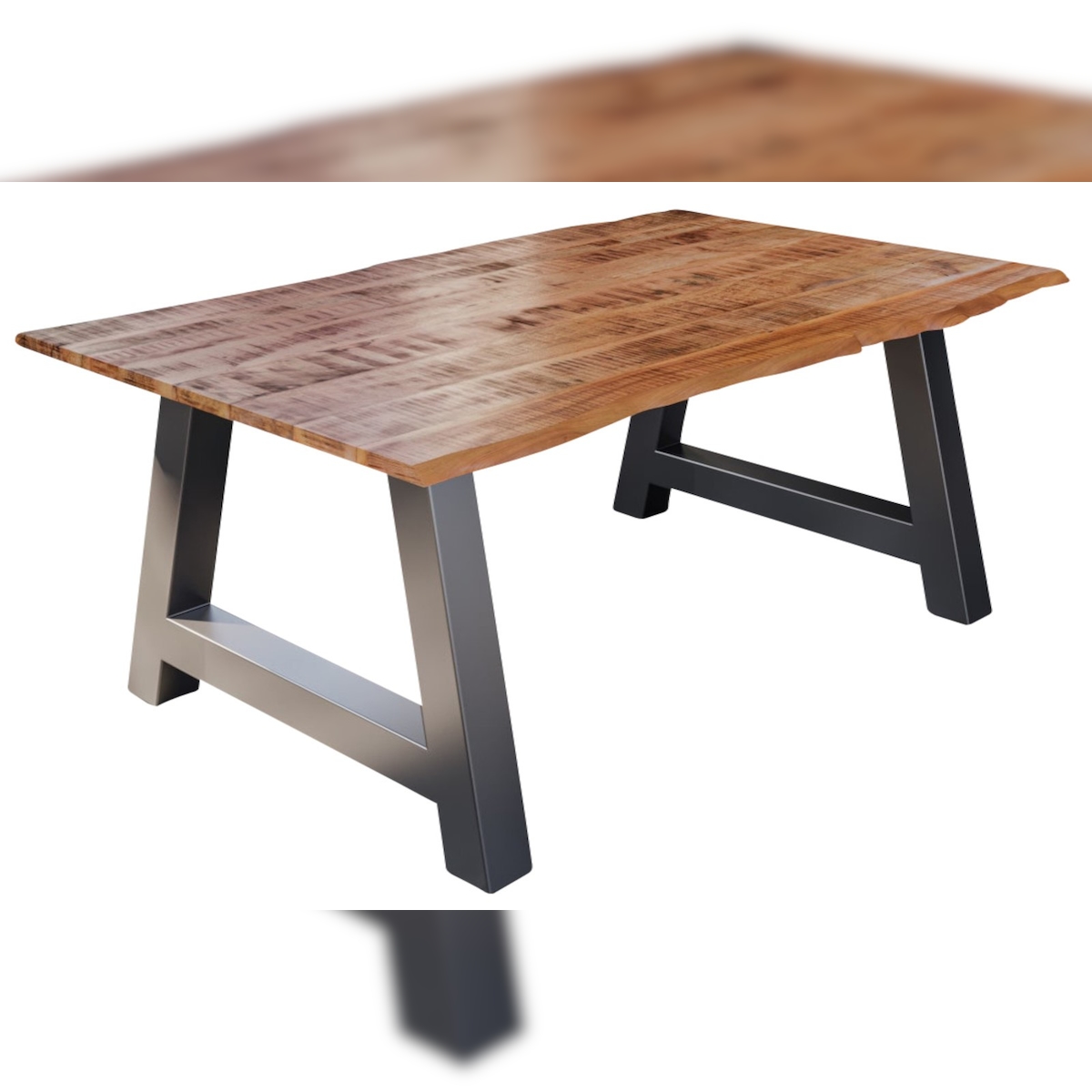 Esstisch Baumkante Massiv Mango naturfarben 120 x 80 silber A-Gestell DORA