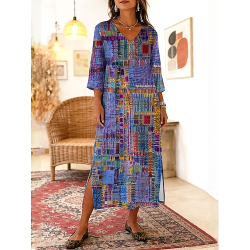 Per donna Abito Midi Abito Boho Abito a Tubino Vestito Estivo Abito da Spiaggia Bohemien Vacanza Etnico Spiaggia Ferie Data Vestibilità comoda Grafico Astratto Manica 3/4 Scollo a V Viola Estate