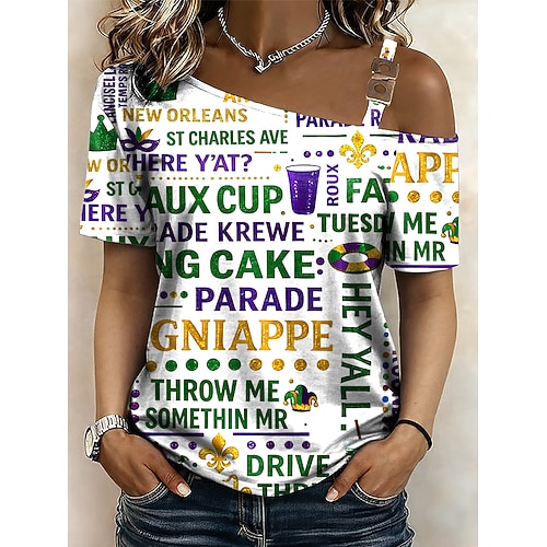 Martedì grasso Per donna Maglietta Grafico Tropicale Hawaiano Elegante Manica Corta Collo asimmetrico Top corti Quotidiano Sportivo Uscire Bianco / Nero Bianco Giallo Verde chiaro Viola Estate