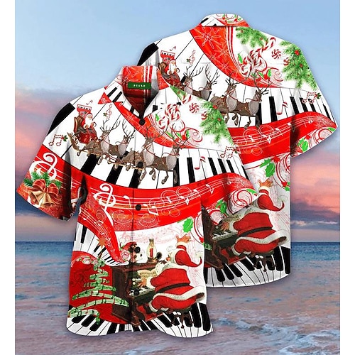 Herren Weihnachtsmann Hemd Kurzarm Hemd Umlegekragen Weihnachten Straße 3D-Druck Schwarz Schwarz / Rot Rote Blau Blau Blau Druck Button-Down Bekleidung Mode Designer Lässig Atmungsaktiv