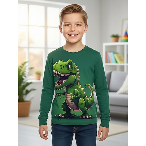 Jungen 3D Dinosaurier T-Shirt Langarm Frühling Herbst Mode Basic Kinder 4-12 Jahre Rundhalsausschnitt Outdoor Lässig Täglich Normale Passform