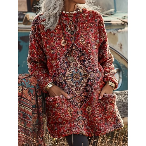 Per donna Felpa Pullover Felpe con cappuccio Grafico Geometrico Moda Casual Manica Lunga Girocollo Top Regolari Streetwear Abbigliamento Quotidiano Casuale Stampato Rosso Blu Autunno Inverno