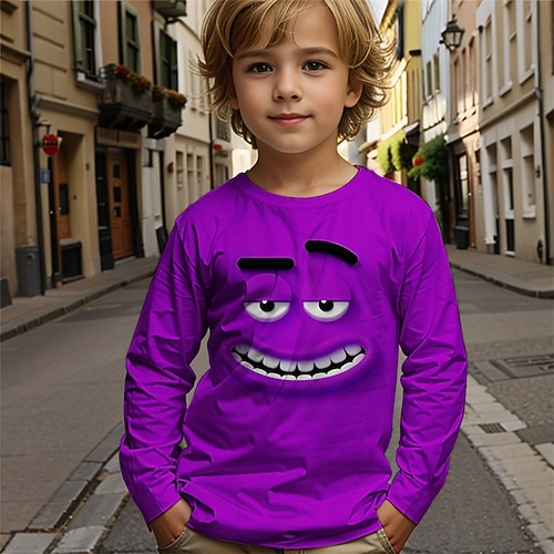 Ragazzi 3D Cartoni animati Maglietta Manica Lunga Primavera Autunno Moda Essenziale Bambini 4-12 Anni Girocollo All'aperto Casuale Quotidiano Vestibilità regolare