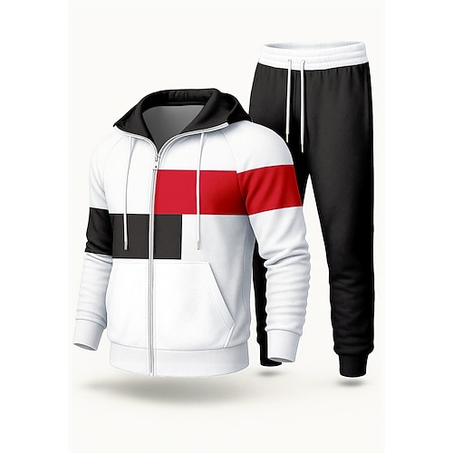 Herren Kapuzensweatshirt Trainingsanzug 2-teiliger Trainingsanzug Kordelzug Reißverschluss Farbblock Kombination Herbst Schwarz Berufung Outdoor Reise Leicht Mode Langarm Sport Sportkleidung Dehnbar