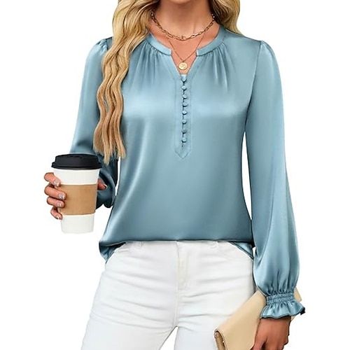 Per donna Blusa Tinta unica Elegante Essenziale Casual Manica Lunga Scollo a V Top Regolari Quotidiano Bottoni Nero Marrone Albicocca Azzurro Primavera Autunno