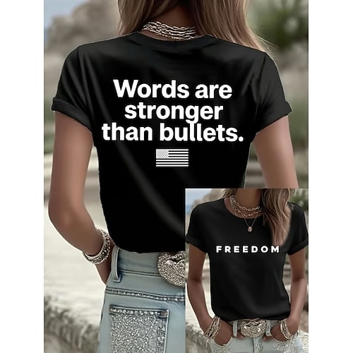 Giorno dell'Indipendenza Americana Per donna Maglietta Grafico Bandiera Americana Vintage Elegante Classico Manica Corta Girocollo Top Regolari Quotidiano Weekend Stampato Blu Nero Bianco Rosso Grigio