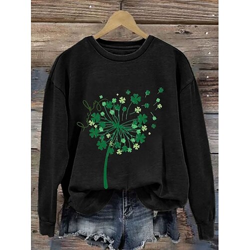Per donna Pullover Felpe Grafico Trifoglio Casual Manica Lunga Girocollo Top Regolari Casuale Streetwear Abbigliamento Quotidiano Stampato Nero Bianco Verde Primavera Autunno Inverno