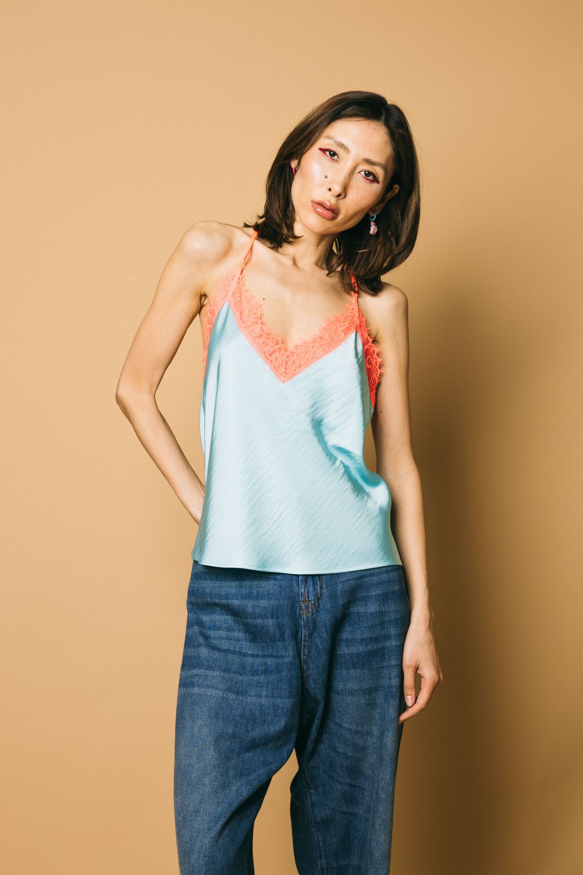 Fang lace trim vest top top essentiel antwerp azzurro/arancio neon, 42