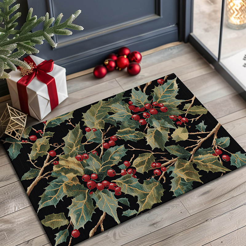 Christmas Decorations Doormat Poinsettia Kitchen Mat Floor Mat Non-Slip Area Rug Oil Proof Rug Indoor Outdoor Mat Bedroom Decor Bathroom Mat Entrance Rug