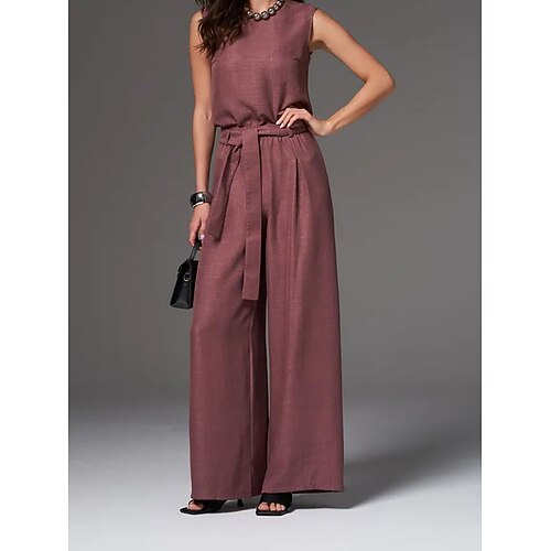 Per donna Set di Pantaloni Bolero Top Senza Maniche Girocollo Semplice Patchwork Elegante Moda Streetwear Casuale Quotidiano All'aperto Nero Borgogna Blu Estate Vestibilità regolare