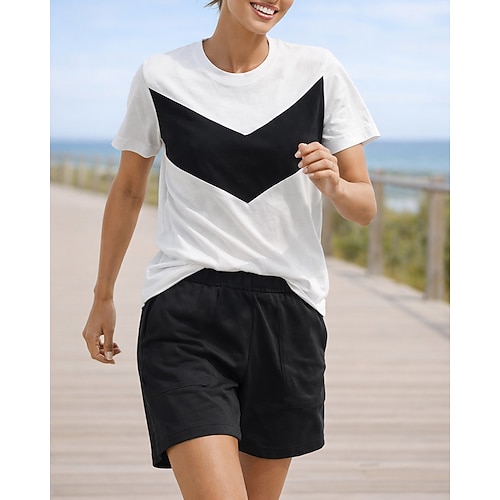 Per donna Set di Pantaloni Senza Maniche Scollo a V A righe Stampato Moda Streetwear Casual Quotidiano Nero Bianco Verde Estate Vestibilità regolare