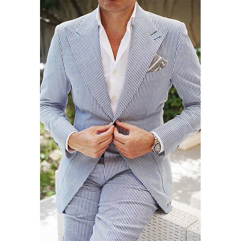 Men's Beach Wedding Suits Peak Blue Solid Colored Standard Fit 2 Piece Single Breasted Two-buttons