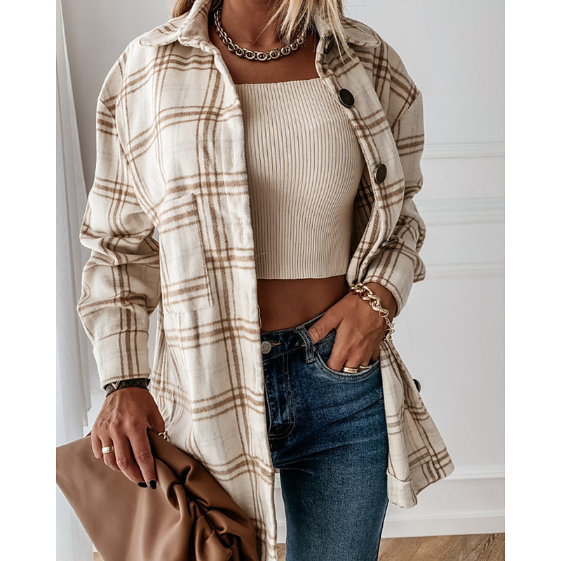 Women's Shirt Blouse Plaid Stylish Long Sleeve Shirt Collar Regular Tops Daily Holiday Going out Pocket Buttons White Pink Apricot Fall Winter