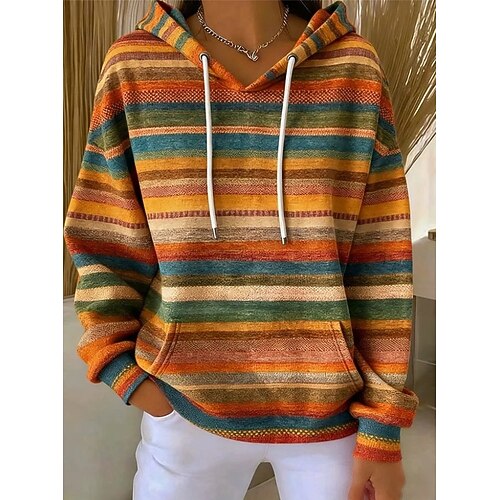 Per donna Felpa con cappuccio Grafico Geometrico Plaid Caldo Vintage Casual Manica Lunga Con Cappuccio Top Regolari Streetwear Abbigliamento Quotidiano Casuale Stampato Tasca Frontale Marrone