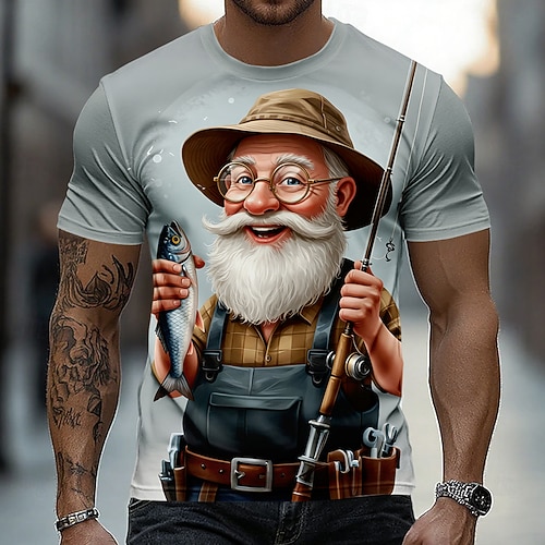 Per uomo Vecchio Uomo Per la pesca Maglietta Manica Corta maglietta Stampa 3D Girocollo Camicia Esagerato Designer Quotidiano Club Feste Bianco Grigio Estate Primavera Tutte le stagioni Abbigliamento